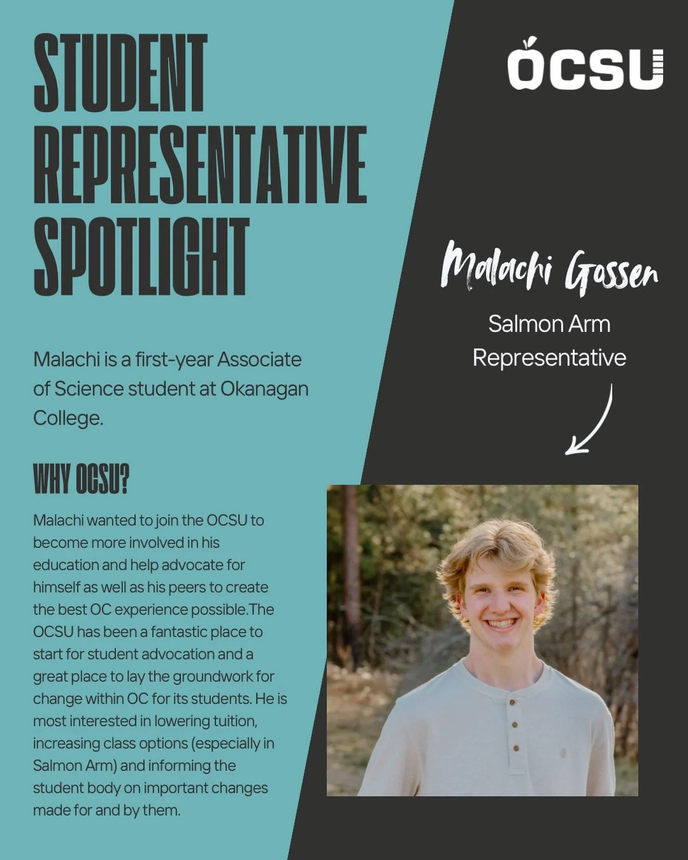 The Okanagan College Students’ Union operates under three specific mandates. We aim to ensure that post-secondary education is of high quality, publicly funded, and we hold education decision makers and stakeholders accountable to students. OCSU strives to achieve these goals through providing the students of Okanagan College with advocacy, services, and events.